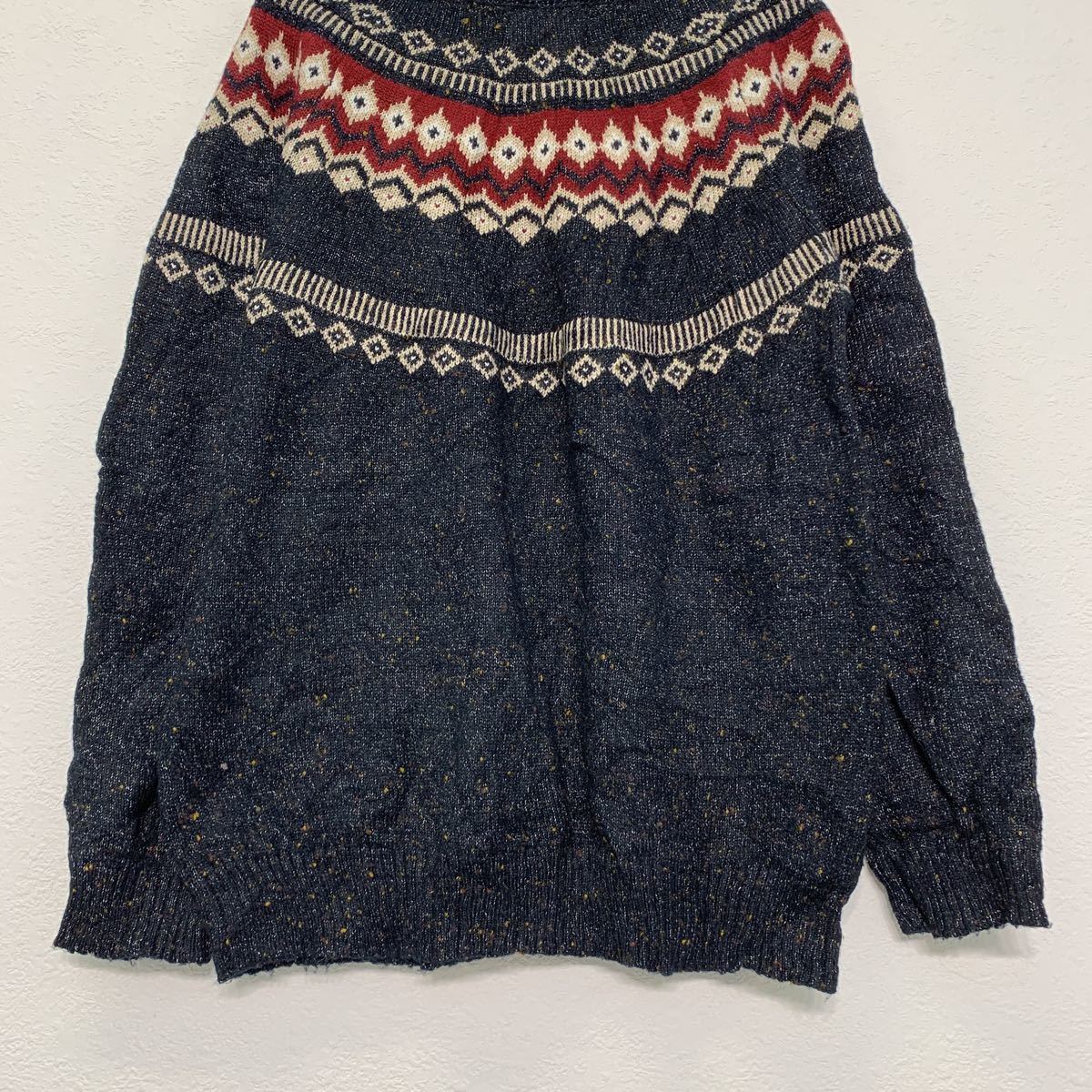 ニット セーター L ネイビー ベージュ ホワイト レッド フェアアイル ラグラン 古着卸 アメリカ仕入 a507-5540