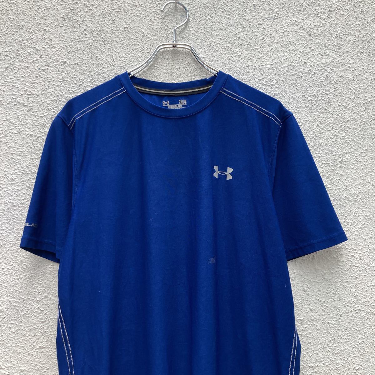 UNDER ARMOUR 半袖 ロゴ Tシャツ L ブルー グレー ホワイトステッチ アンダーアーマー スポーツ ドライ 古着卸 アメリカ仕入 a507-5612