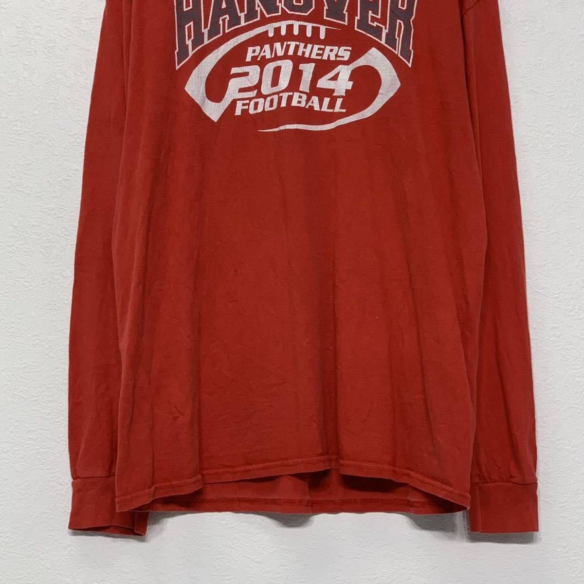 GILDAN 長袖 プリント Tシャツ M レッド ホワイト ギルダン HANOVER サッカー ロゴ ロンT 古着 古着卸 アメリカ仕入 a507-5666
