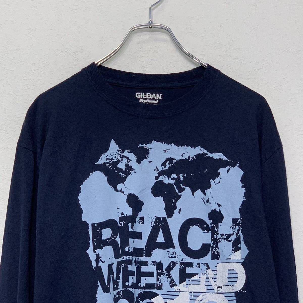GILDAN 長袖 プリント Tシャツ M〜 ネイビー ギルダン ロゴ reachweeked 2013 スポーティ 古着 古着卸 アメリカ仕入 a507-5669