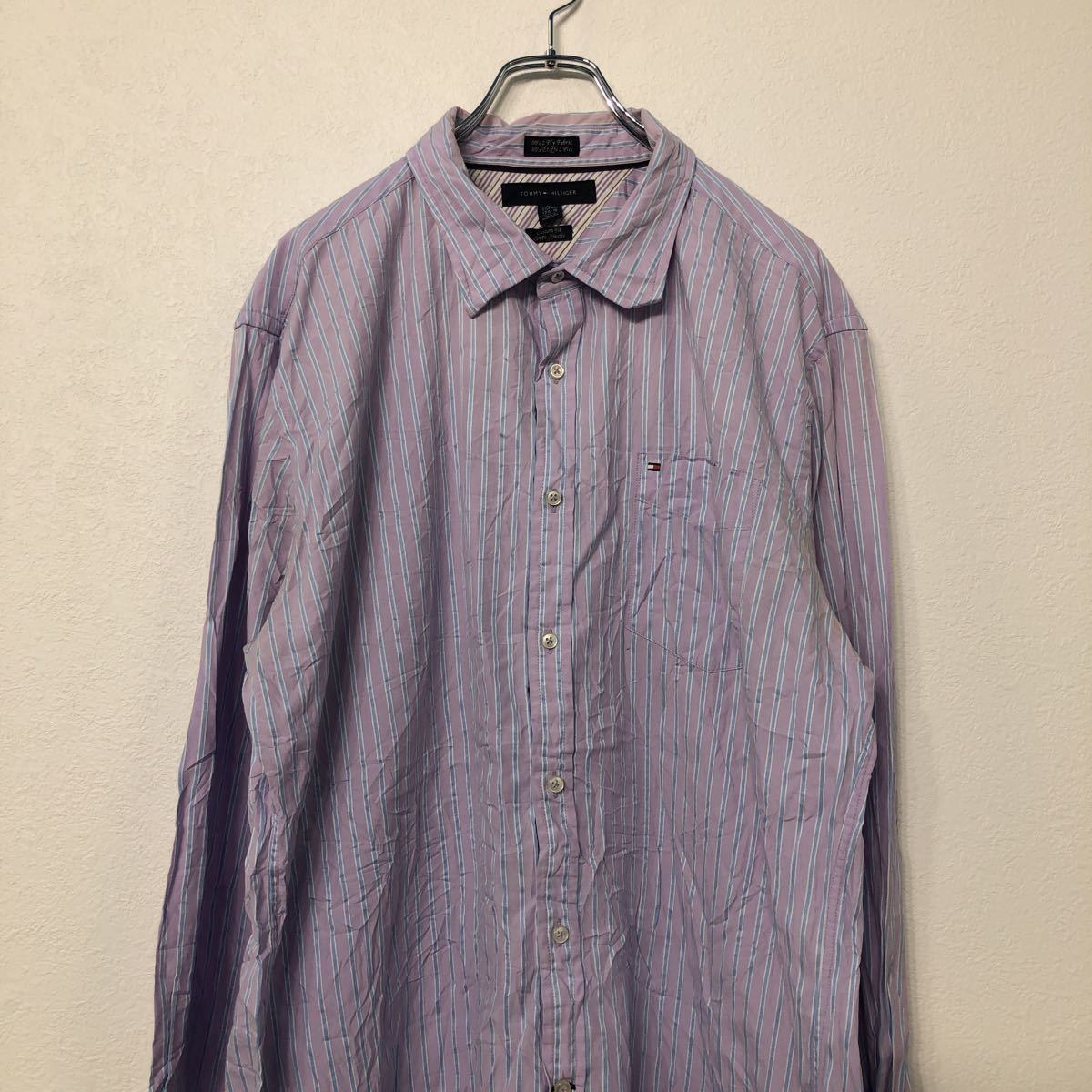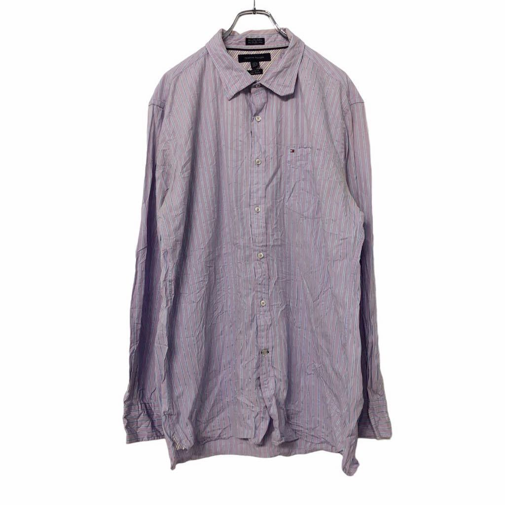TOMMYHILFIGER 長袖 ストライプ シャツ XL パープル ブルー ホワイト トミーヒルフィガー 古着卸 アメリカ仕入 a507-5763
