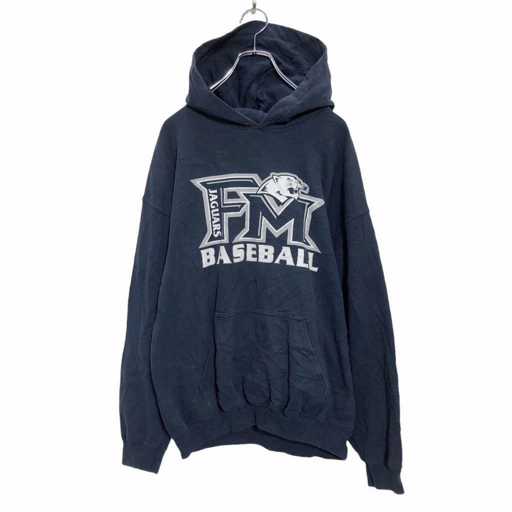 GILDAN プリント スウェット パーカー L ネイビー ホワイト ギルダン ベースボール フーディー 裏起毛 古着卸 アメリカ仕入 a507-5808