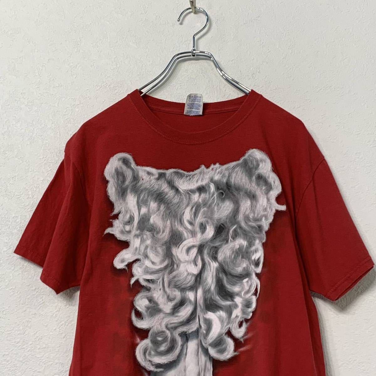 JERZEES 半袖 プリント Tシャツ M レッド ホワイト ジャージーズ ベルト 煙 100% コットン 古着卸 アメリカ仕入 a507-5944