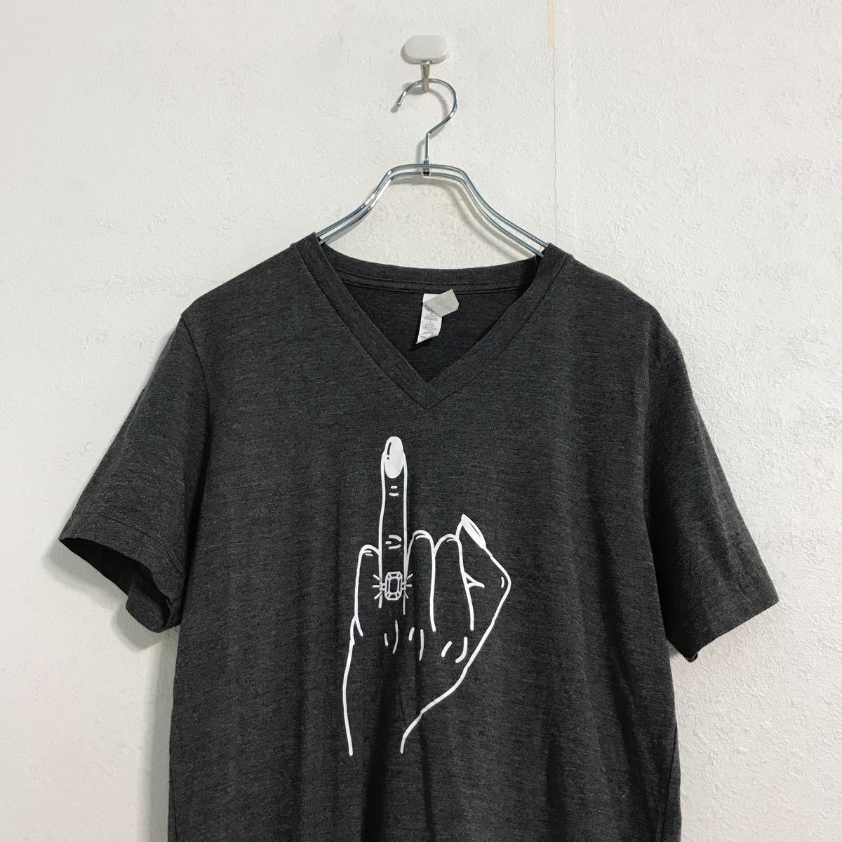 CANVAS 半袖 プリント Tシャツ S ダークグレー キャンバス Vネック 手 指輪 古着卸 アメリカ仕入 a507-6094