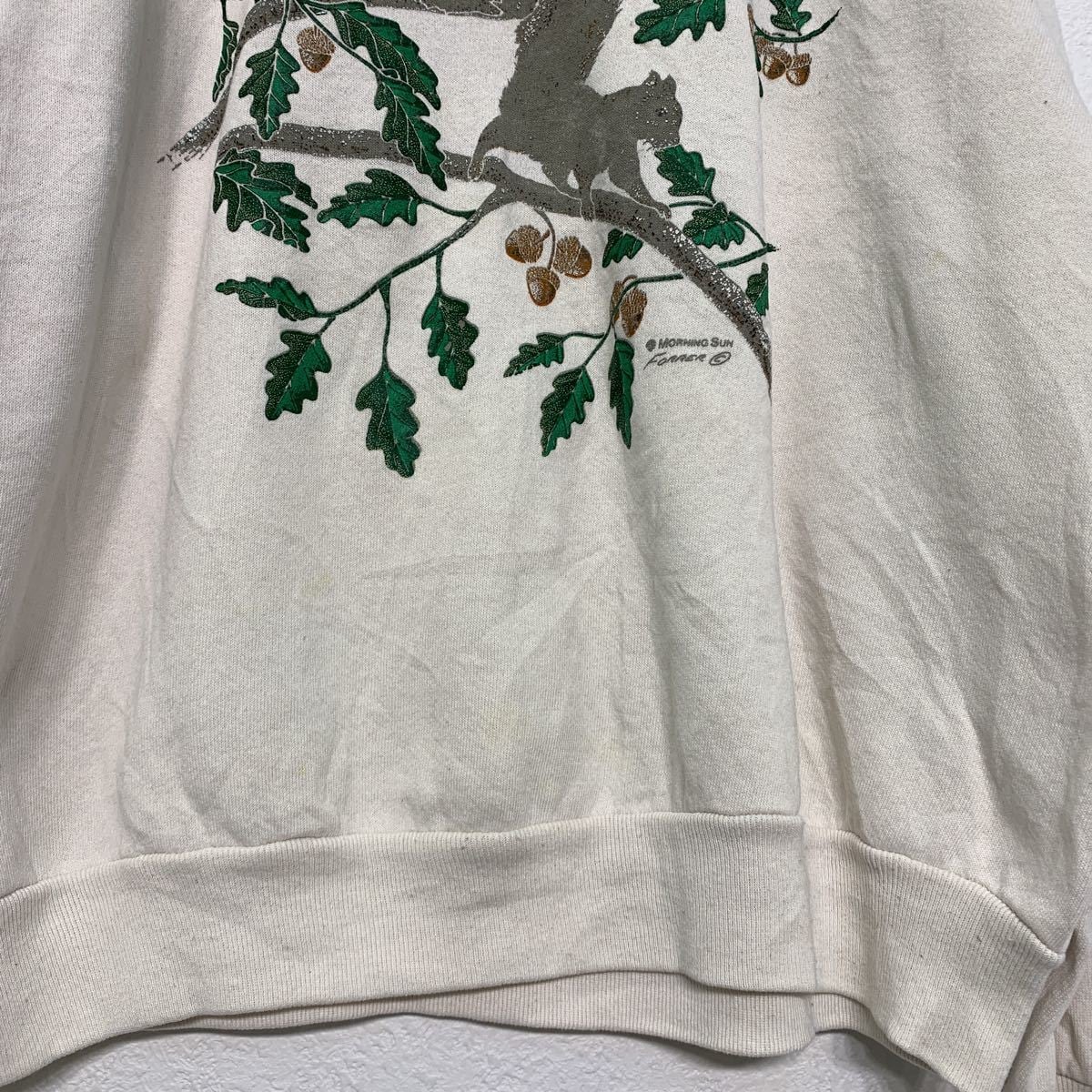 MORNINGSUN プリント スウェット トレーナー レディース L ホワイト グリーン アメリカ製 リス 重ね襟 古着卸 アメリカ仕入 a507-6399