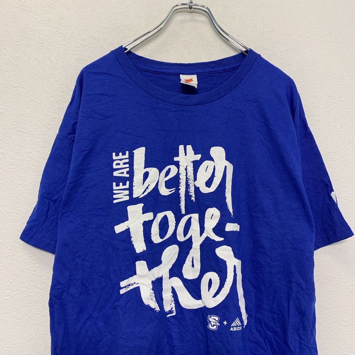 Hanes 半袖 プリント Tシャツ L ブルー ヘインズ バックプリント 古着卸 アメリカ仕入 a507-6478