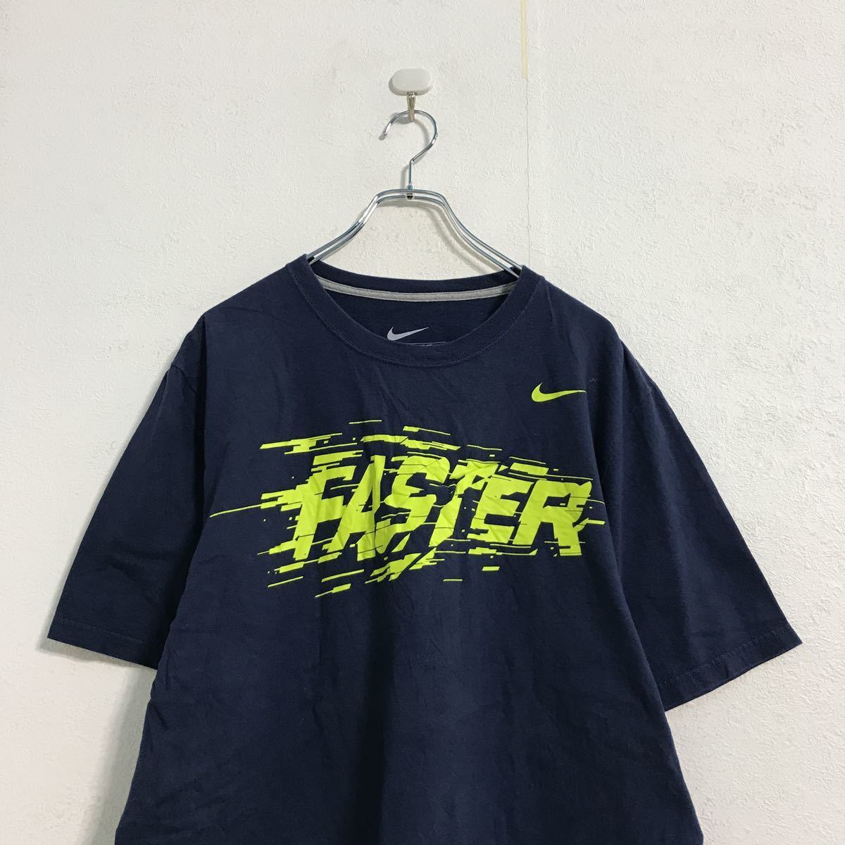 NIKE 半袖 プリント Tシャツ L ネイビー ネオンイエロー ナイキ スポーツ 古着卸 アメリカ仕入 a507-6547