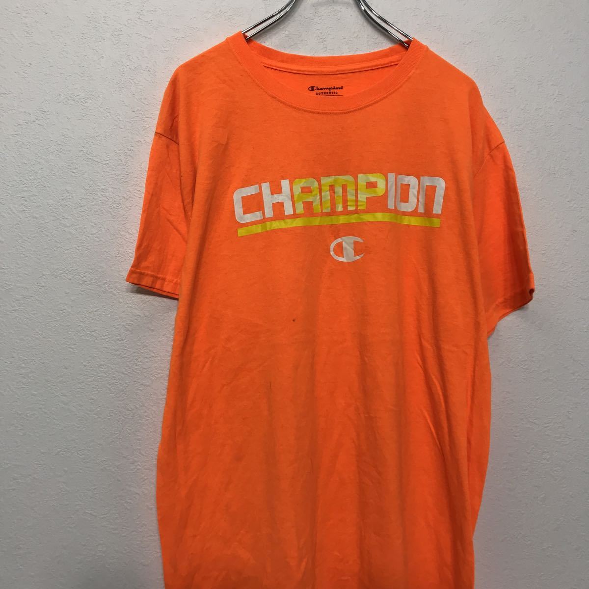 champion 半袖 プリント Tシャツ L オレンジ ホワイト イエロー チャンピオン 文字 ロゴ 古着卸 アメリカ仕入 a507-6885