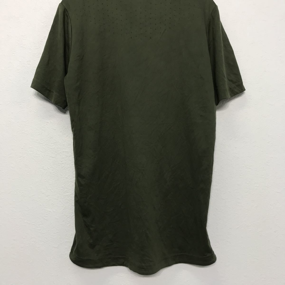 adidas 半袖 プリント Tシャツ M〜 モスグリーン アディダス リフレクター ライン ドライ スポーツ 古着卸 アメリカ仕入 a507-6900