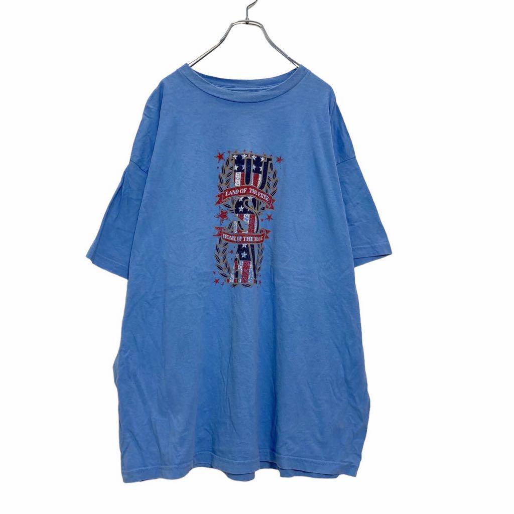 半袖 プリント Tシャツ XXXL ブルー USA アメリカ国旗 ビッグサイズ 星条旗 古着卸 アメリカ仕入 a508-5045