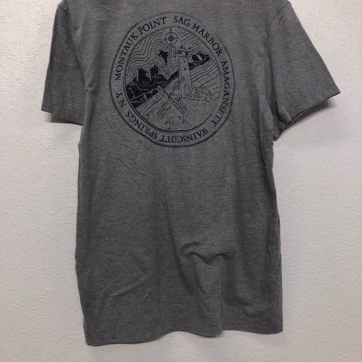 半袖 プリントTシャツ S ライトグレー ブラック バックプリント 灯台 風車 地図 古着卸 アメリカ仕入 a508-5176