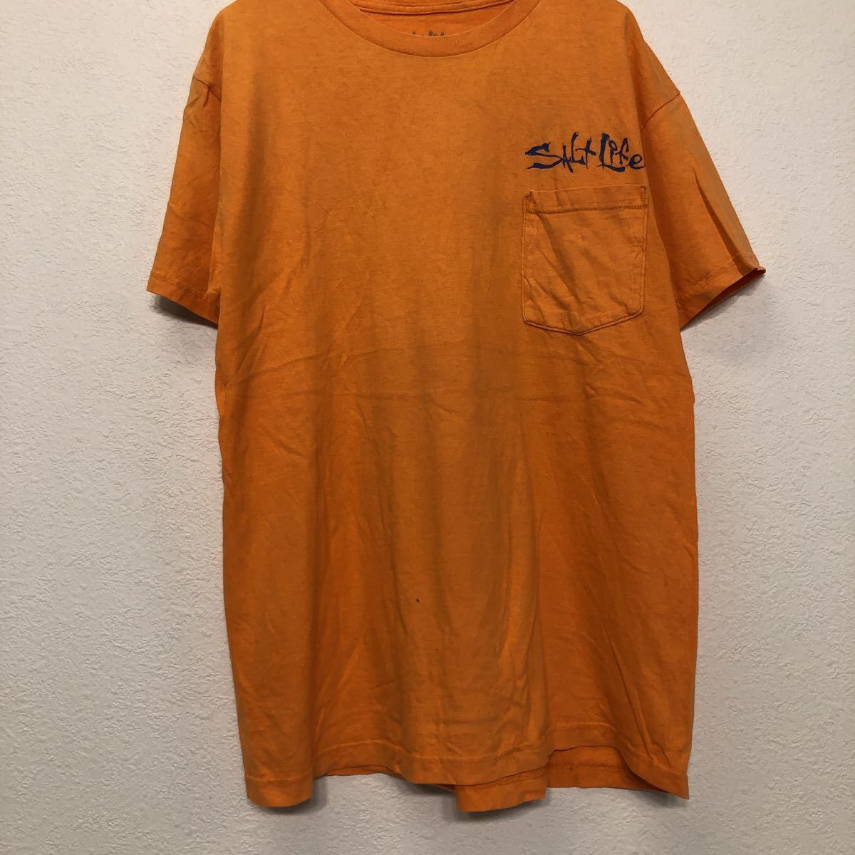 SALT Life 半袖 プリントTシャツ M オレンジ ブルー ソルトライフ ポケット バックプリント 魚 古着卸 アメリカ仕入 a508-5456