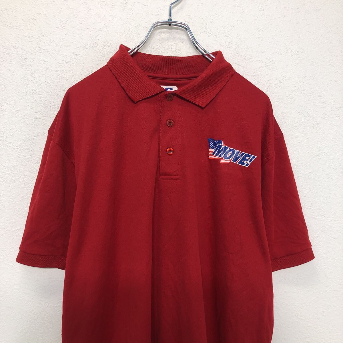 RUSSELL ATHLETIC 半袖 プリント ポロシャツ L レッド ラッセルアスレチック 古着卸 アメリカ仕入 a508-5655