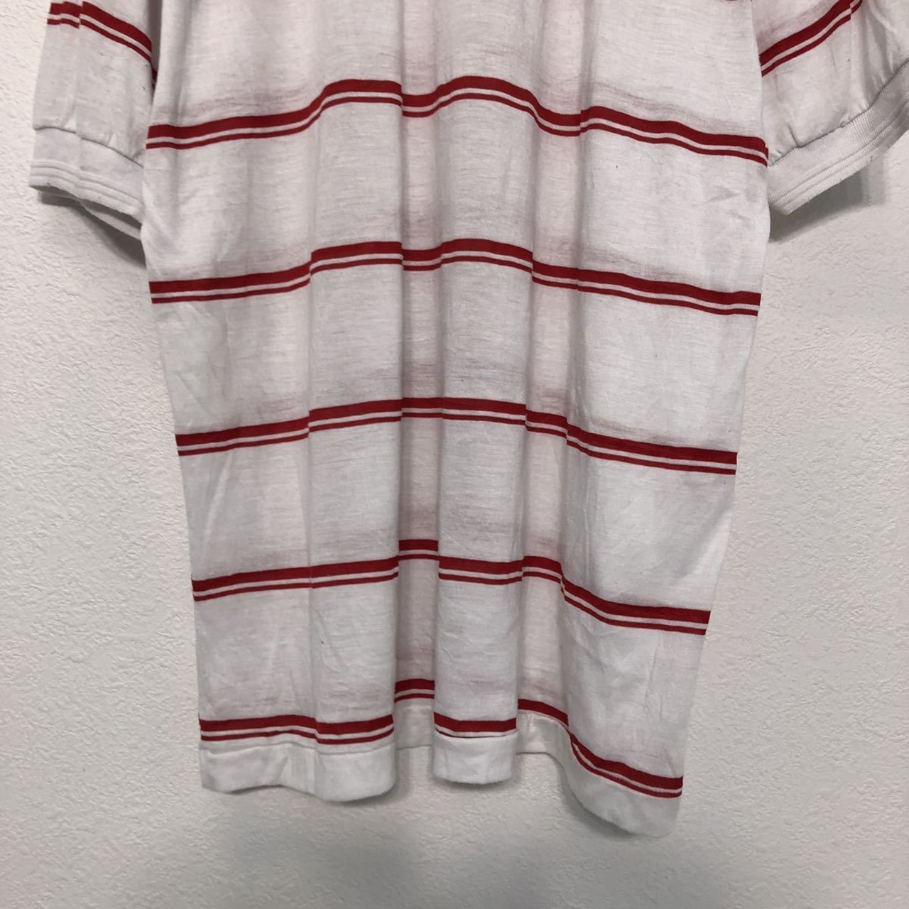 qirad 半袖 ボーダー ポロシャツ L ホワイト レッド 古着卸 アメリカ仕入 a508-5686
