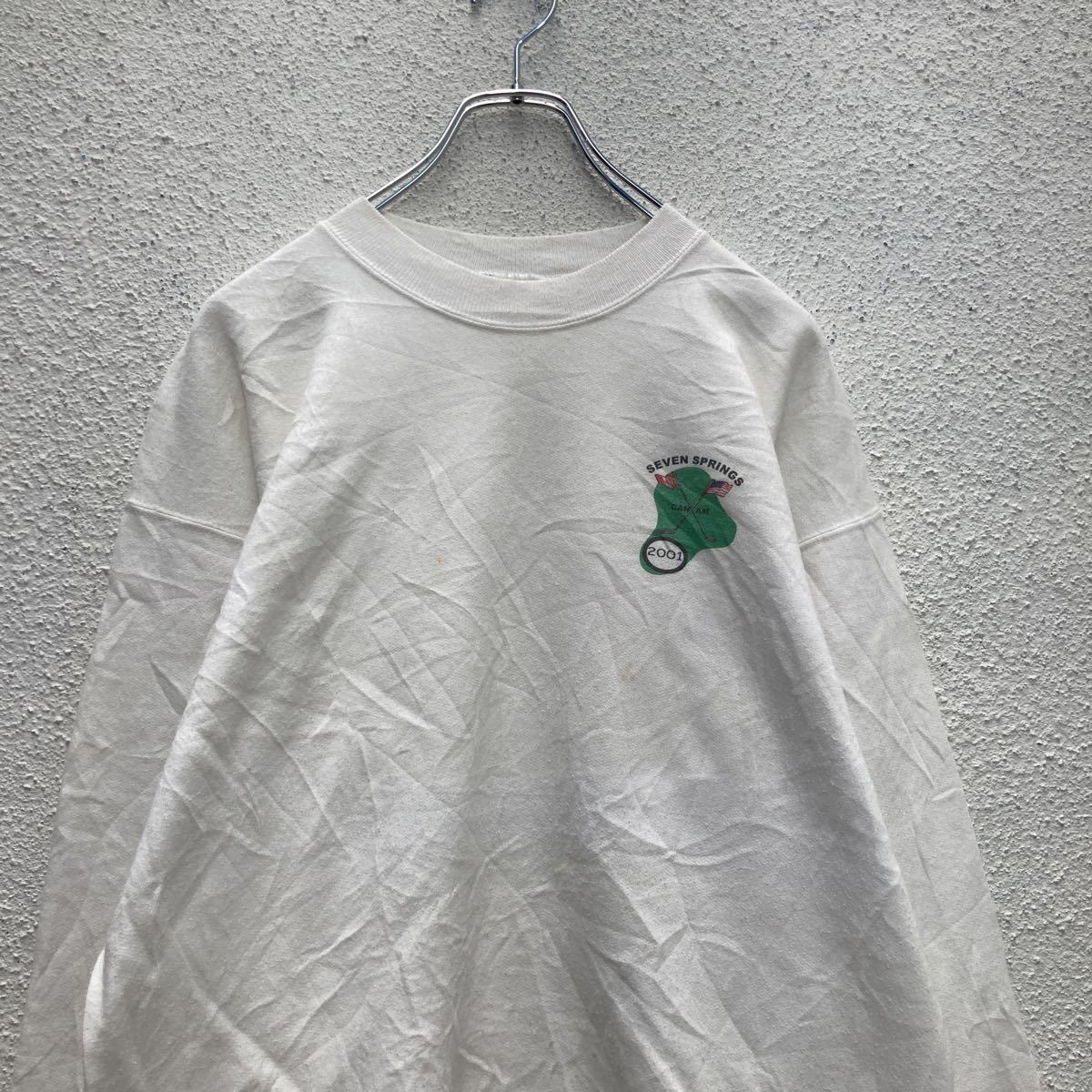 Hanes プリント スウェット トレーナー M ホワイト ヘインズ ゴルフ レトロ 裏起毛 古着卸 アメリカ仕入 a508-5821