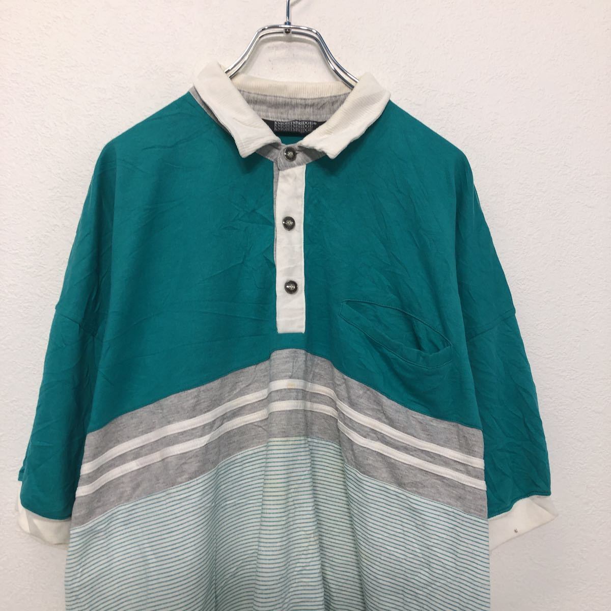 KNIGHTSBRIDGE 半袖 ボーダー ポロシャツ 2X グリーン グレー ホワイト ナイツブリッジ 古着卸 アメリカ仕入 a508-5851