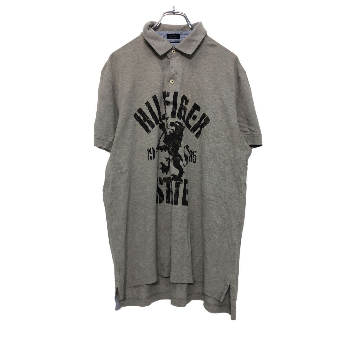 TOMMY HILFIGER 半袖 プリント ポロシャツ L グレー トミーヒルフィガー 古着卸 アメリカ仕入 a508-5859