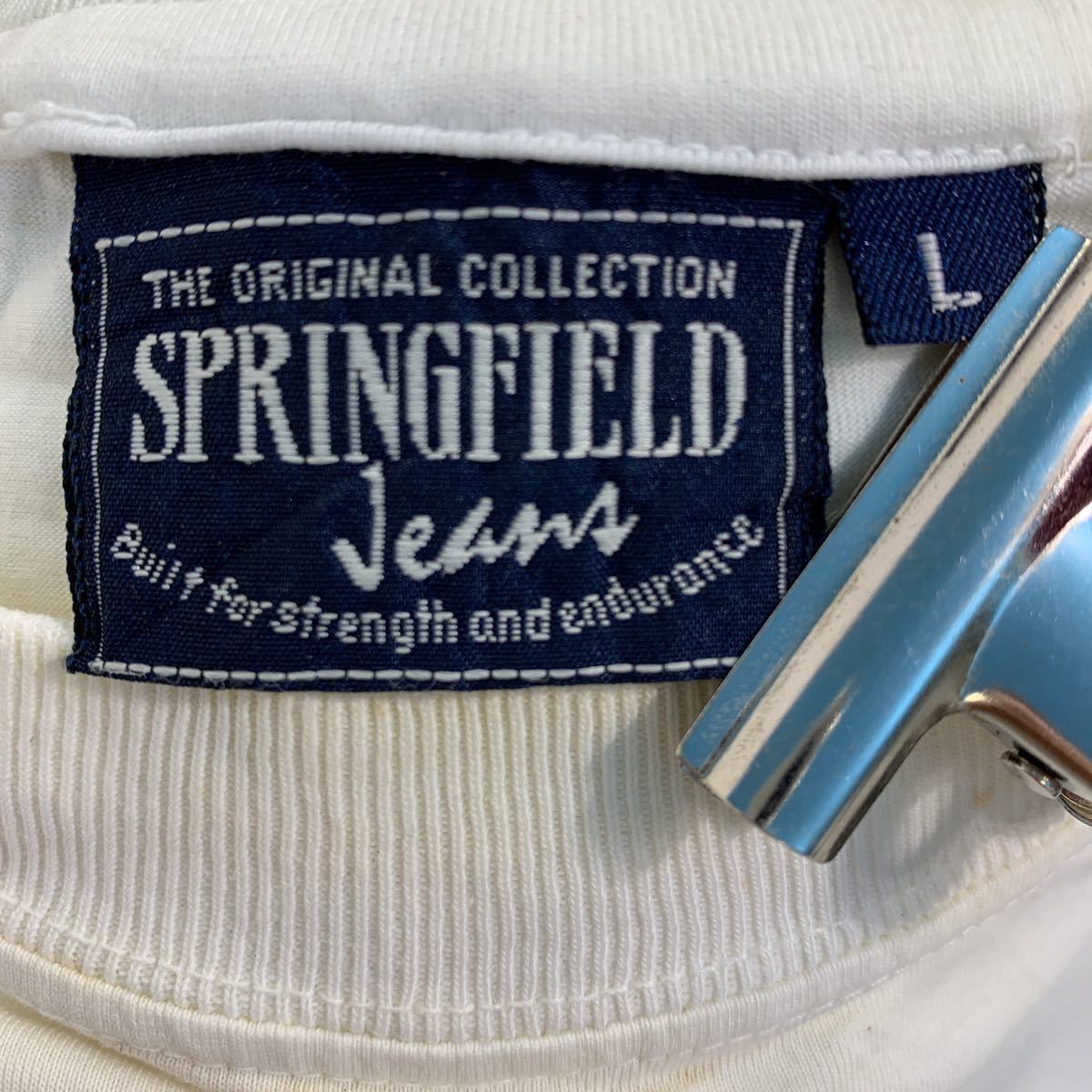 SPRINGFIELD 半袖 ロゴ プリント Tシャツ L ホワイト ブルー シンプル カジュアル ヴィンテージ 古着卸 アメリカ仕入 a508-5993