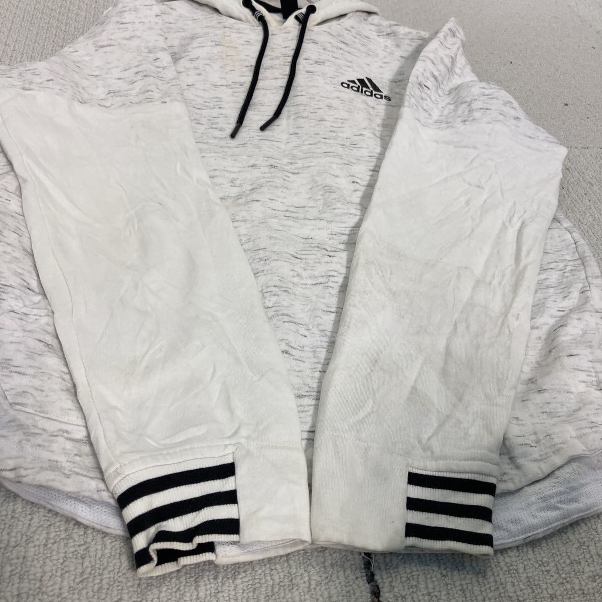 adidas スウェット パーカー S ホワイト ブラック アディダス ロゴ フーディー スポーツ 古着卸 アメリカ仕入 a508-6160