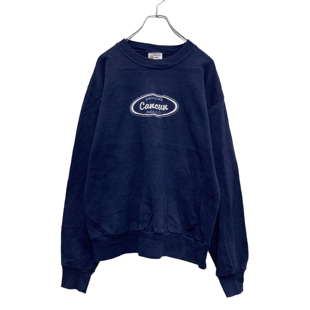 CARIBBEAN SIDE スウェット トレーナー M ネイビー 刺繍 メキシコ製 古着卸 アメリカ仕入 a508-6177