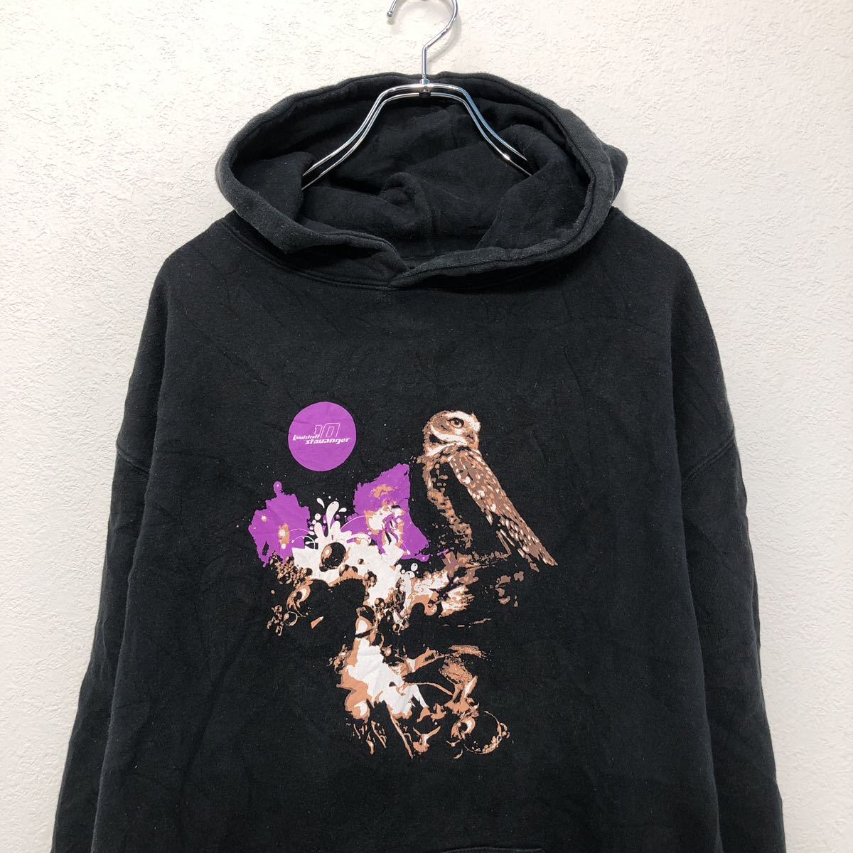 プリント スウェット フーディー L ブラック フクロウ バックプリント 古着卸 アメリカ仕入 a508-6251