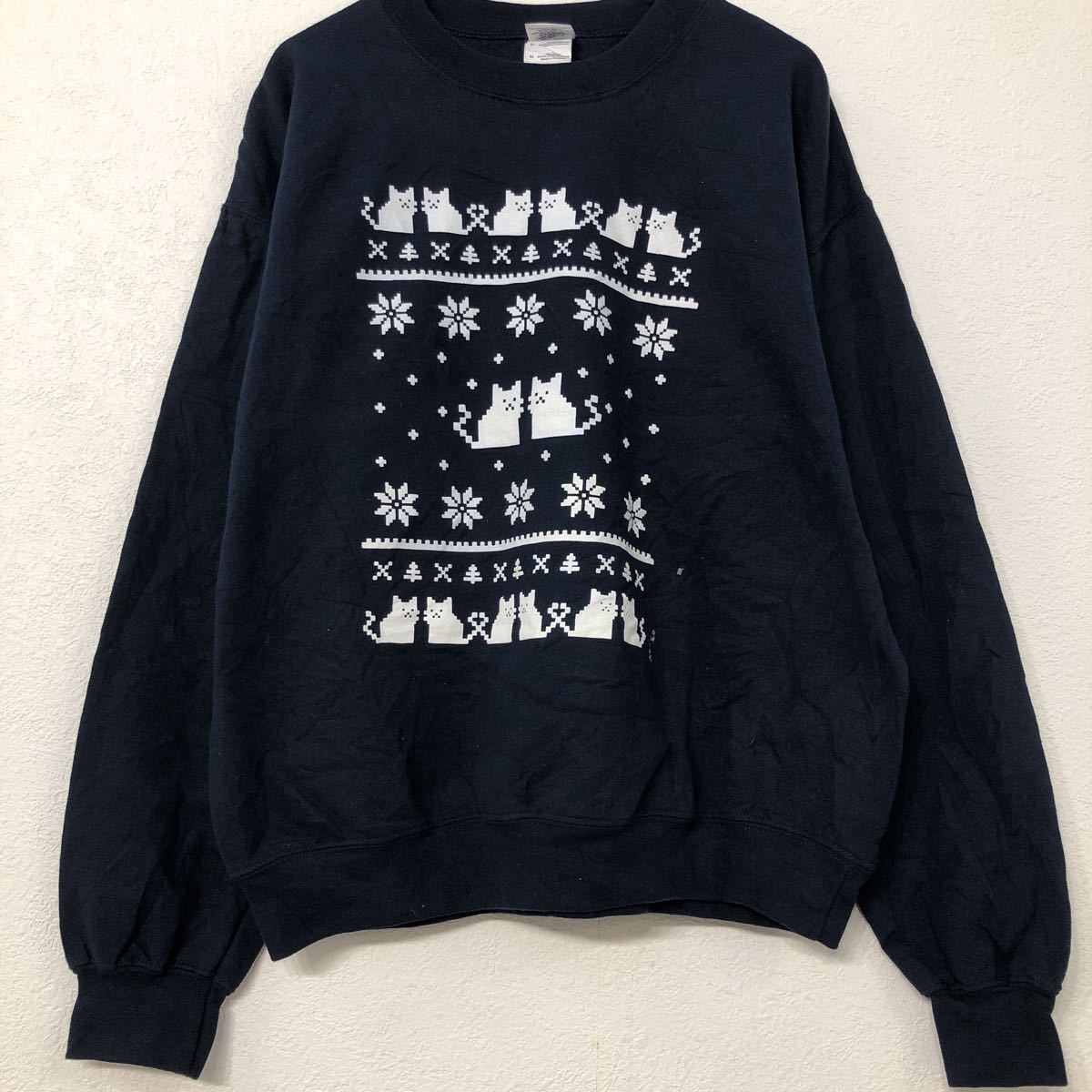 GILDAN プリント スウェット トレーナー M ネイビー ホワイト ギルダン 裏起毛 古着卸 アメリカ仕入 a508-6480