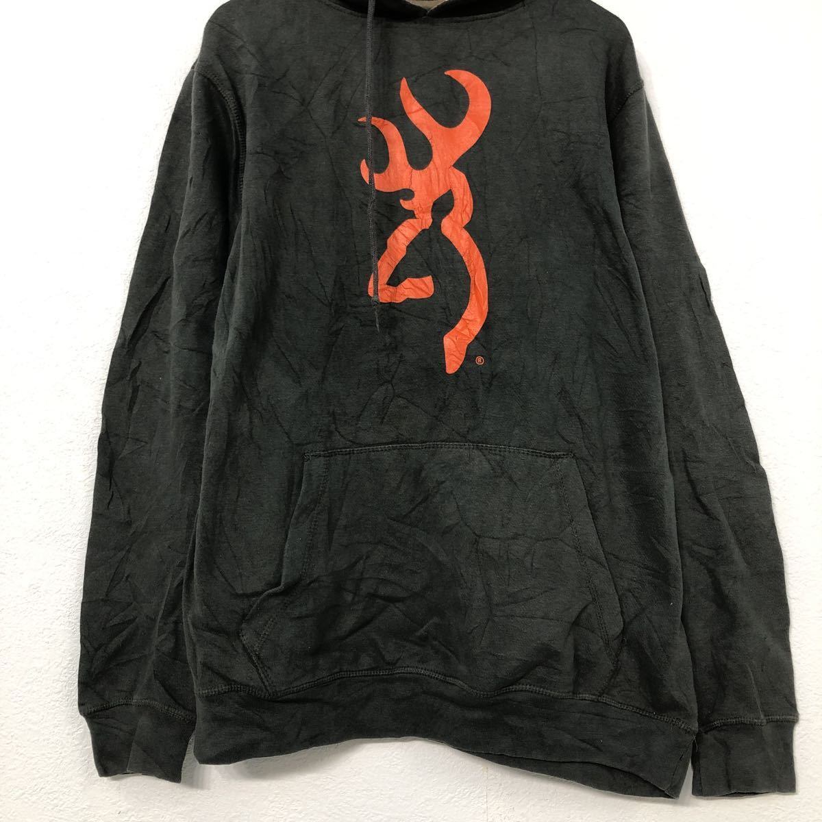 BROWNING プリント スウェット パーカー M ブラック オレンジ ブロウニング 裏起毛 フーディ ポケット 古着卸 アメリカ仕入 a508-6723