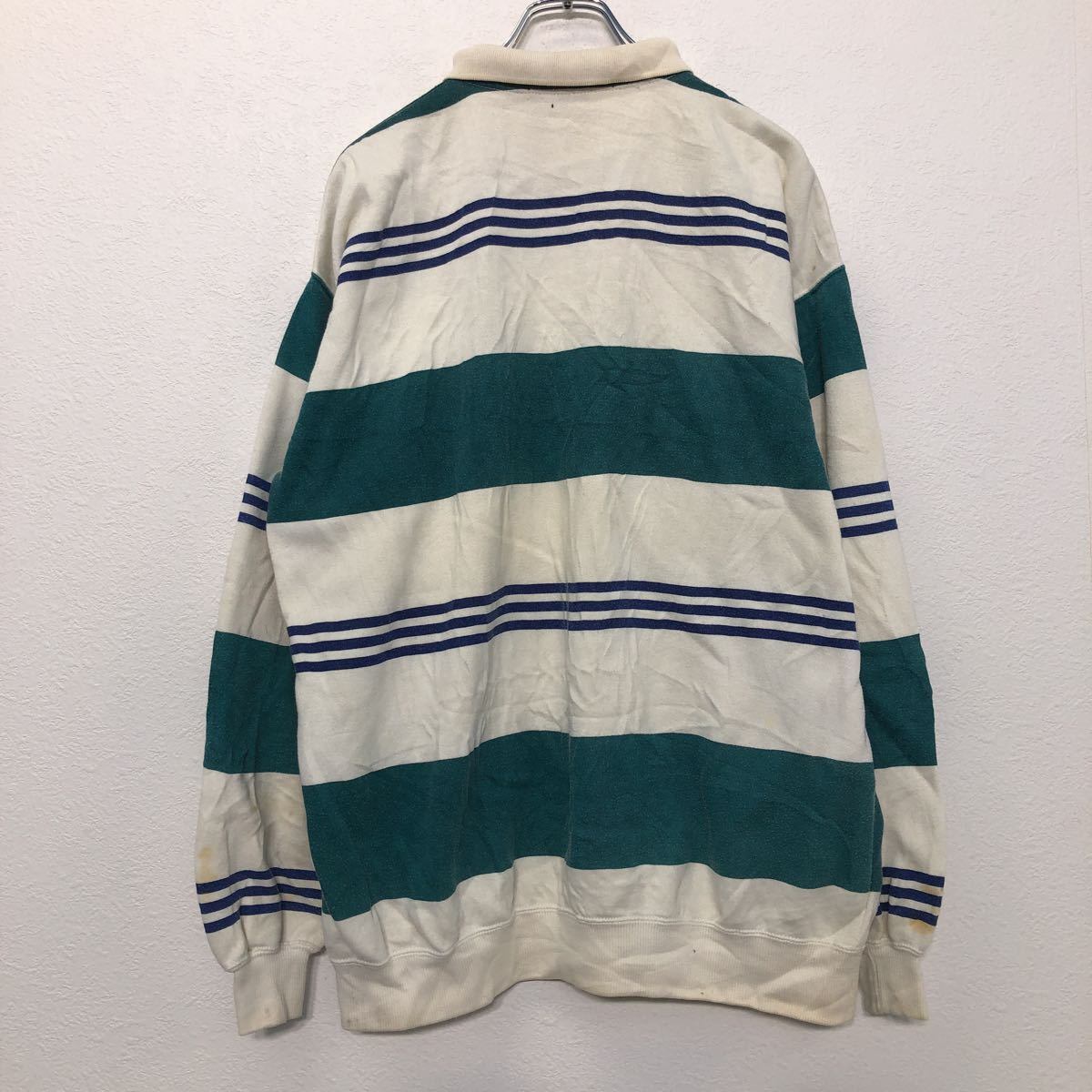 Knights of Round Table 長袖 ボーダー ポロシャツ L ホワイト ブルー グリーン ロゴ 古着卸 アメリカ仕入 a508-6892