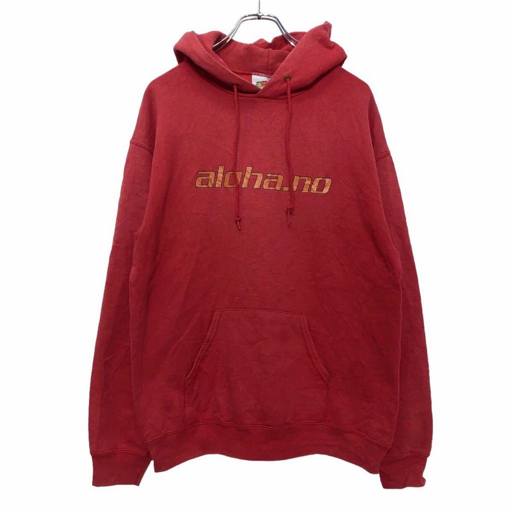 FRUIT OF THE LOOM プリント スウェット パーカー M レッド オレンジ フルーツオブザルーム ポケット 古着卸 アメリカ仕入 a508-6895