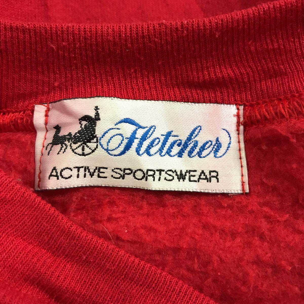Fletcher ロゴ スウェット トレーナー L レッド 裏起毛 ワンポイントロゴ 古着卸 アメリカ仕入 a508-6910