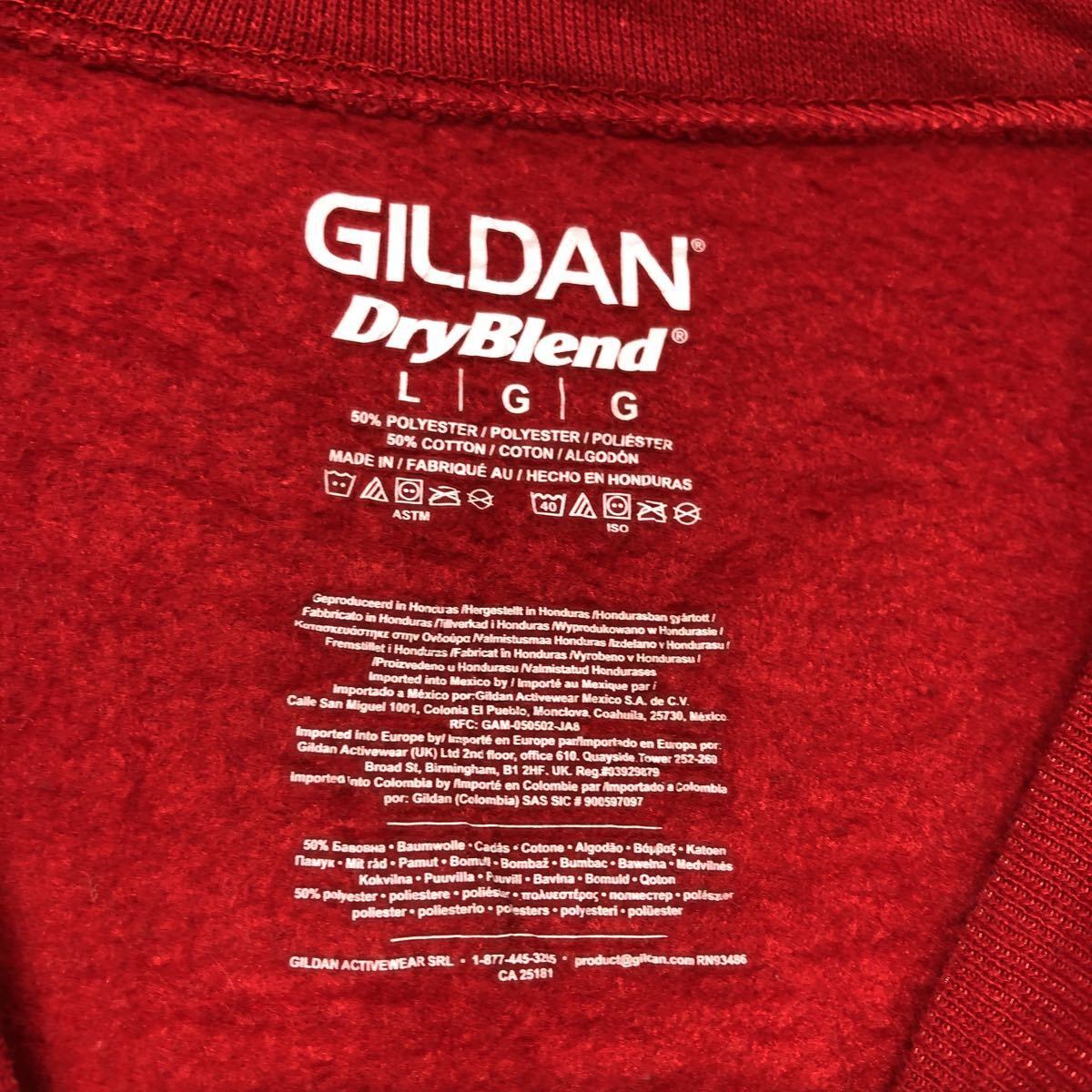 GILDAN プリント スウェット トレーナー L レッド ホワイト ギルダン 裏起毛 古着卸 アメリカ仕入 a508-6938