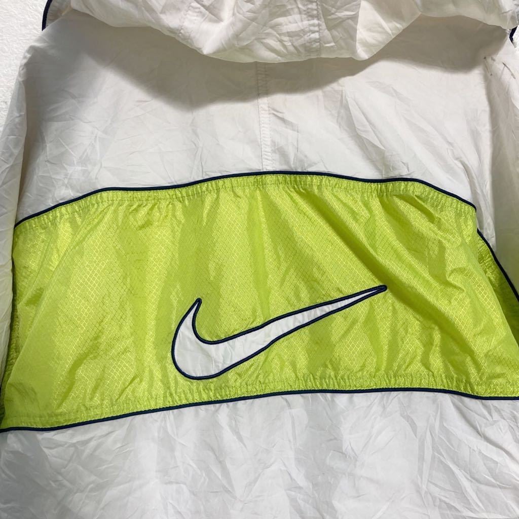 NIKE ジップアップ ナイロン パーカー レディース M ホワイト グリーン ナイキ スポーツ ストリート 古着卸 アメリカ仕入 a508-7010