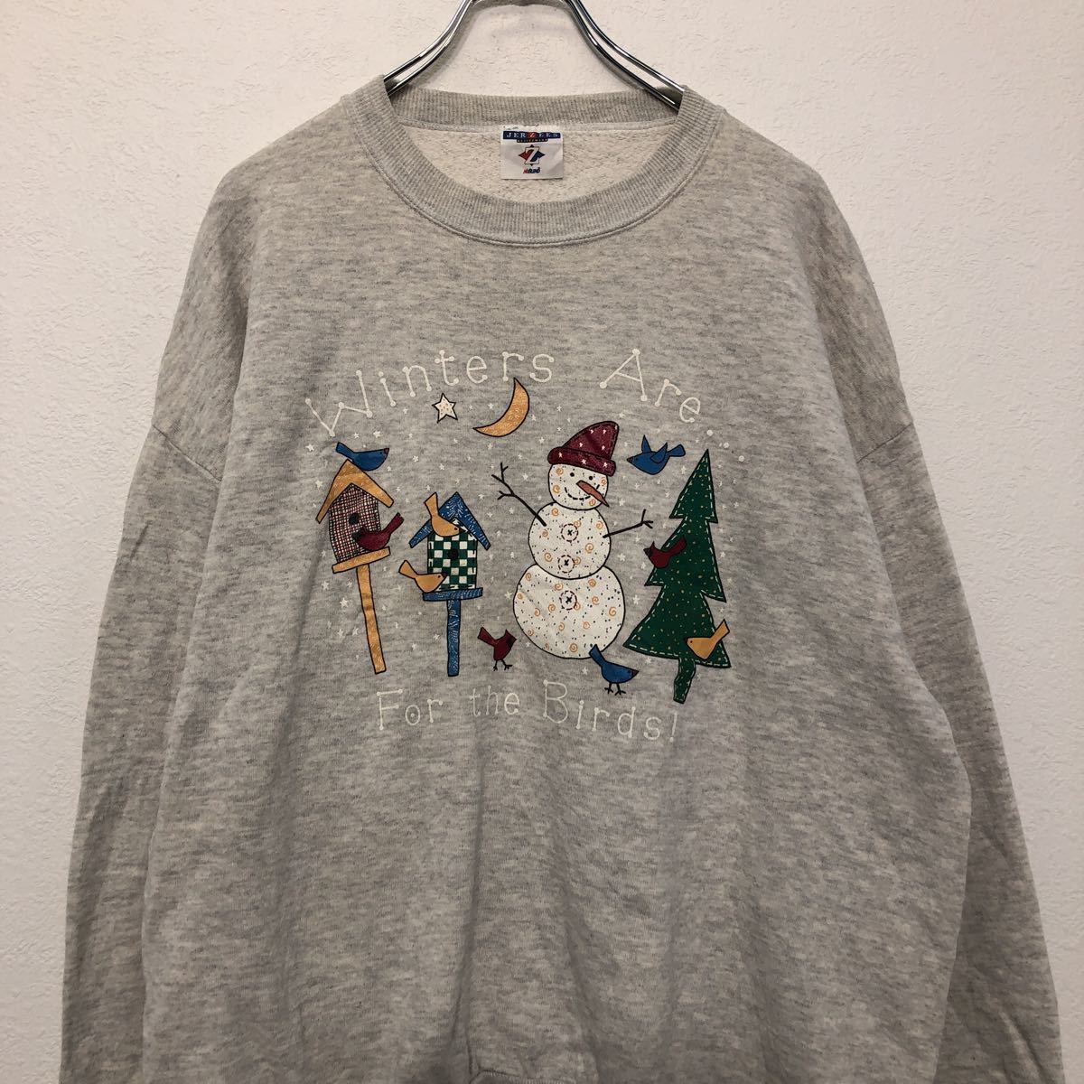 JERZEES プリント スウェット トレーナー M〜 ライトグレー ジャージーズ 雪だるま ツリー 月 とり 古着卸 アメリカ仕入 a508-7045