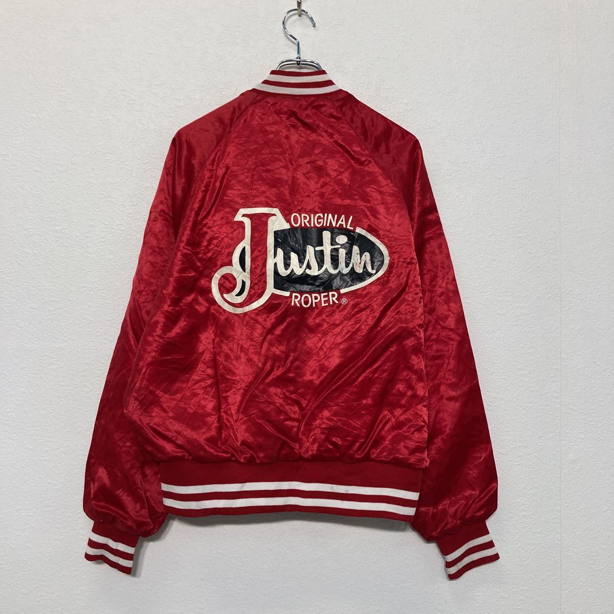 Justin ナイロン スタジャン M レッド ホワイト ジャスティン スナップボタン 裏地あり アウター 古着卸 アメリカ仕入 a508-7308