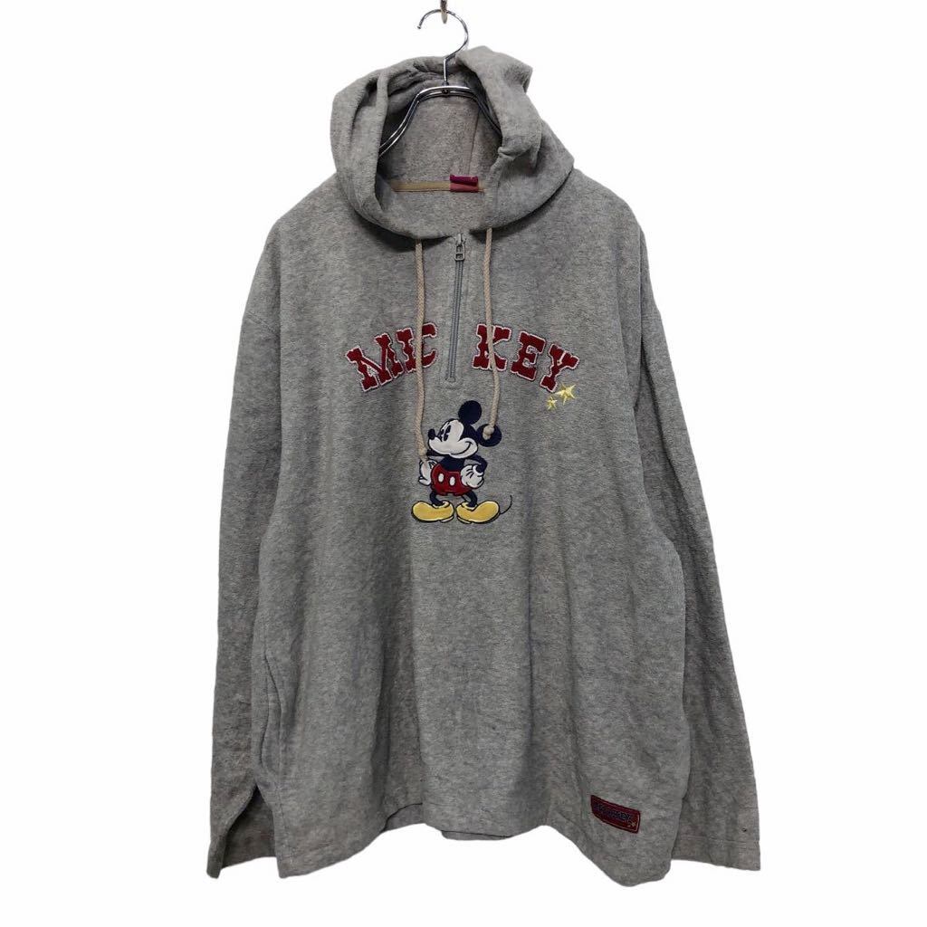Disney フリース ジャケット L ライトグレー レッド ブラック ディズニー ミッキー ハーフジップ 古着卸 アメリカ仕入 a508-7359