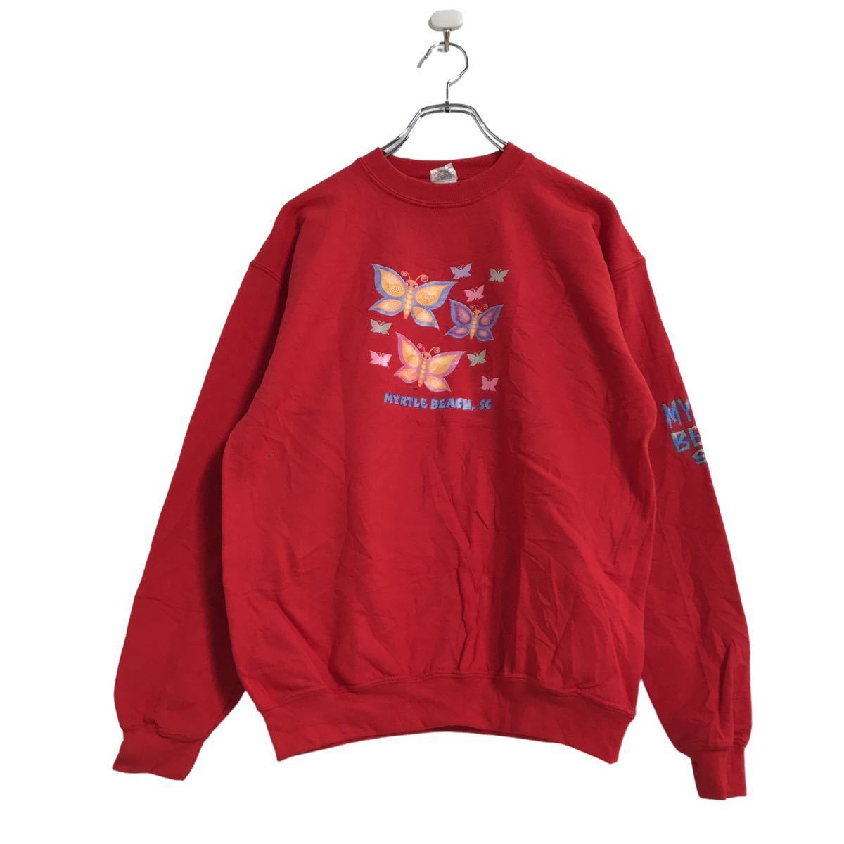 GILDAN プリント スウェット トレーナー キッズ XL レッド ギルダン 蝶 裏起毛 古着卸 アメリカ仕入 a508-7373
