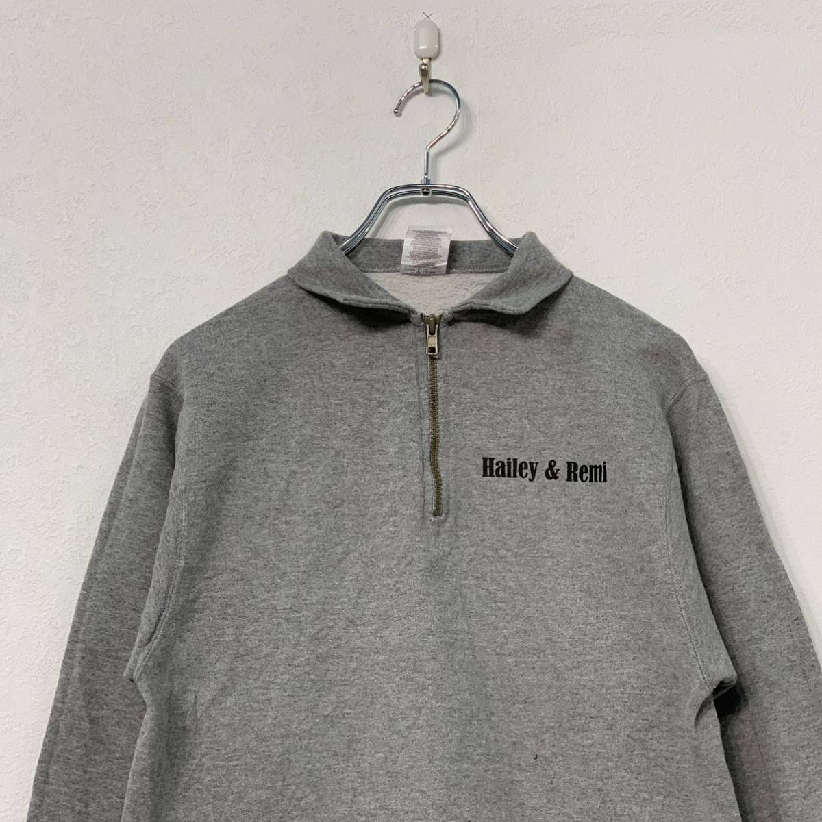 JERZEES スウェット プリント トレーナー ハーフジップ S グレー ジャージーズ 襟付き バックプリント 古着卸 アメリカ仕入 a508-7378