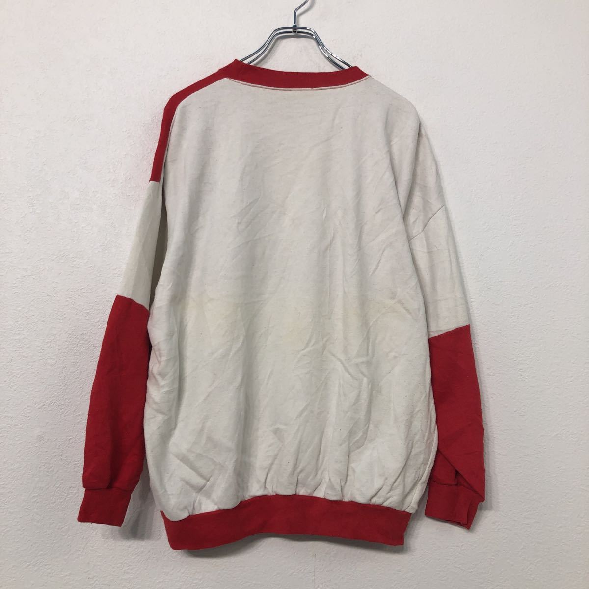 COLOUR Attituoe プリント スウェット トレーナー L ホワイト レッド ブラック 裏起毛 古着卸 アメリカ仕入 a508-7445