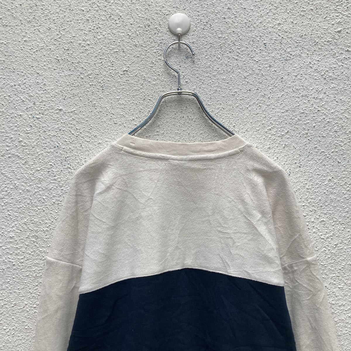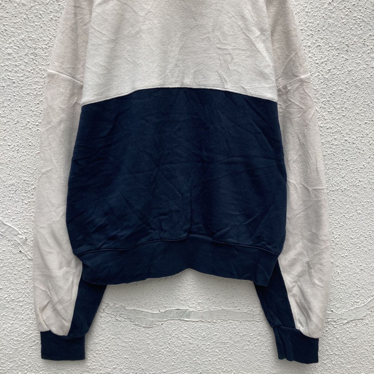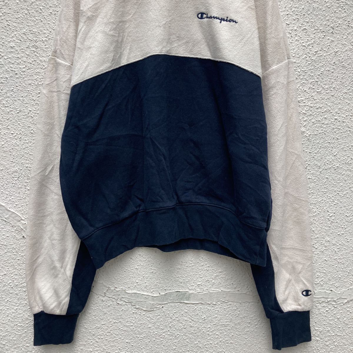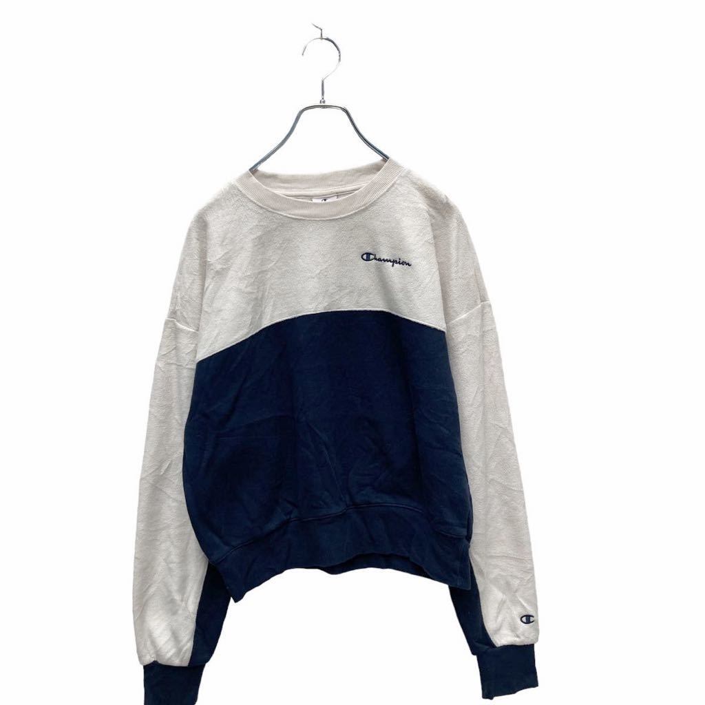 Champion ロゴ スウェット トレーナー レディース L ネイビー ホワイト チャンピオン 異素材 フリース 古着卸 アメリカ仕入 a508-7584