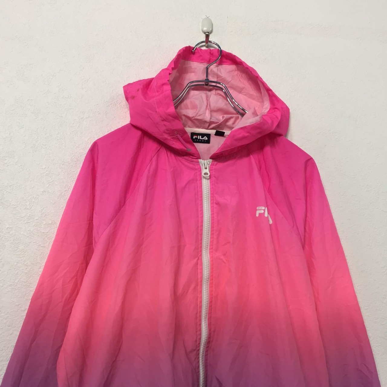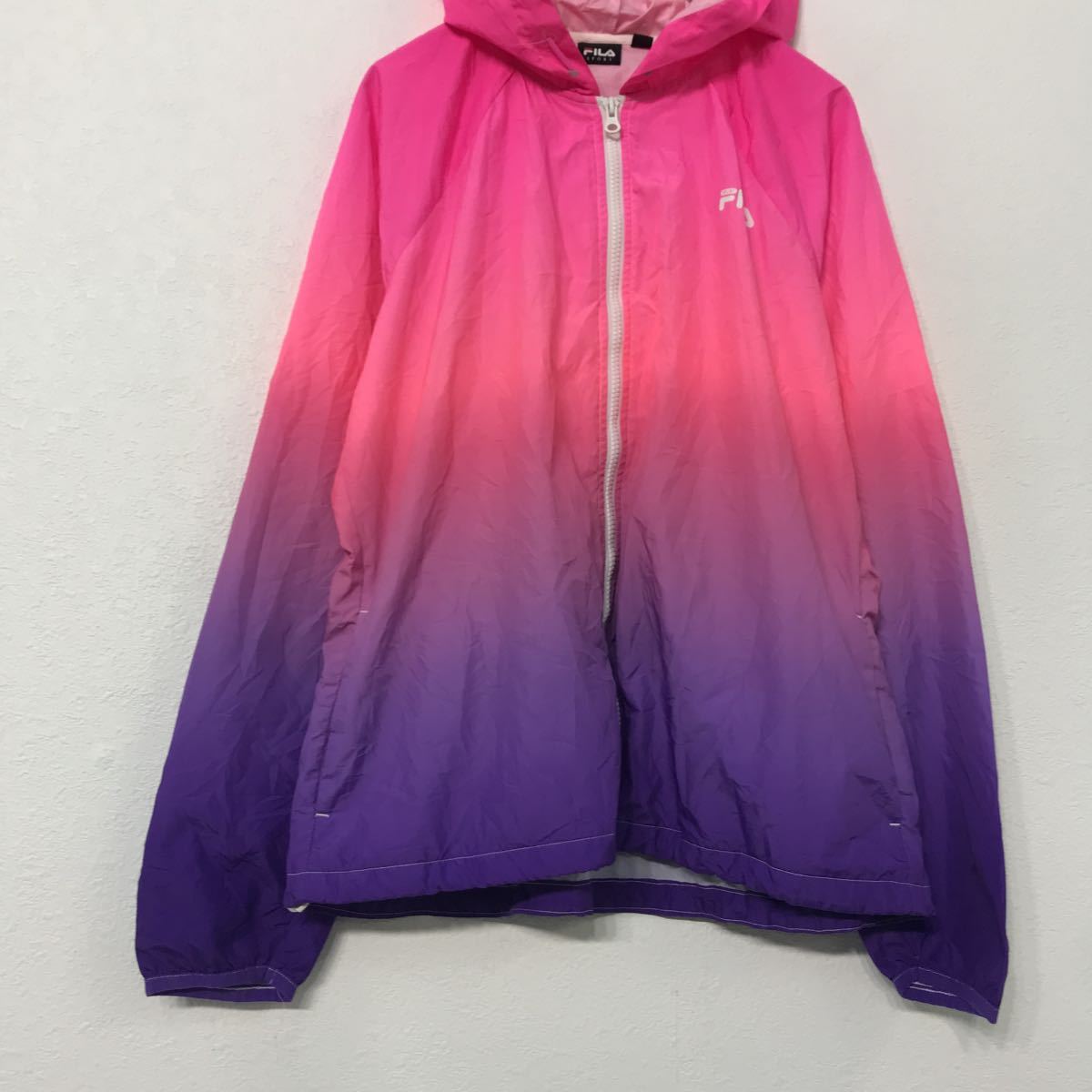 FILA ジップアップ ナイロン ジャケット L ピンク パープル フィラ フーディー ポケット 古着卸 アメリカ仕入 a509-5179