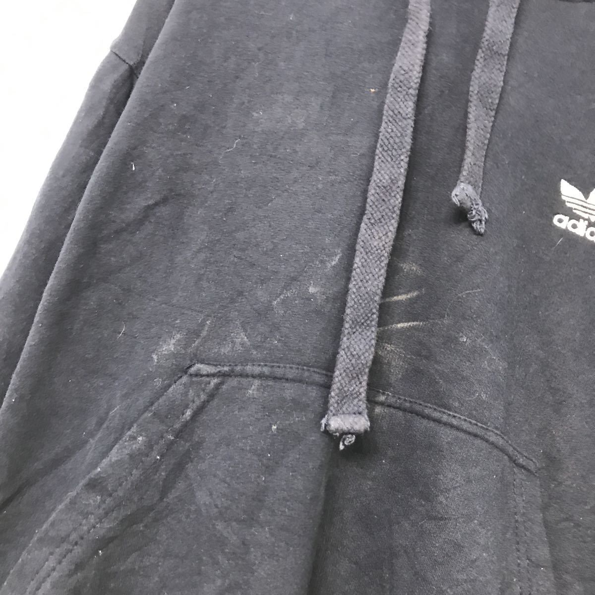 adidas ロゴ スウェットトレーナー M ブラック ホワイト アディダス 裏起毛 フーディー ポケット 古着卸 アメリカ仕入 a509-5263