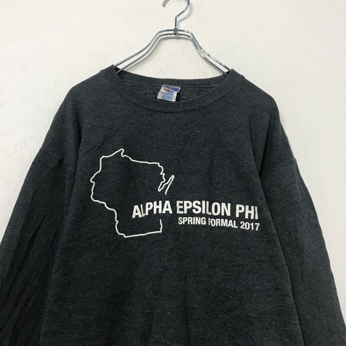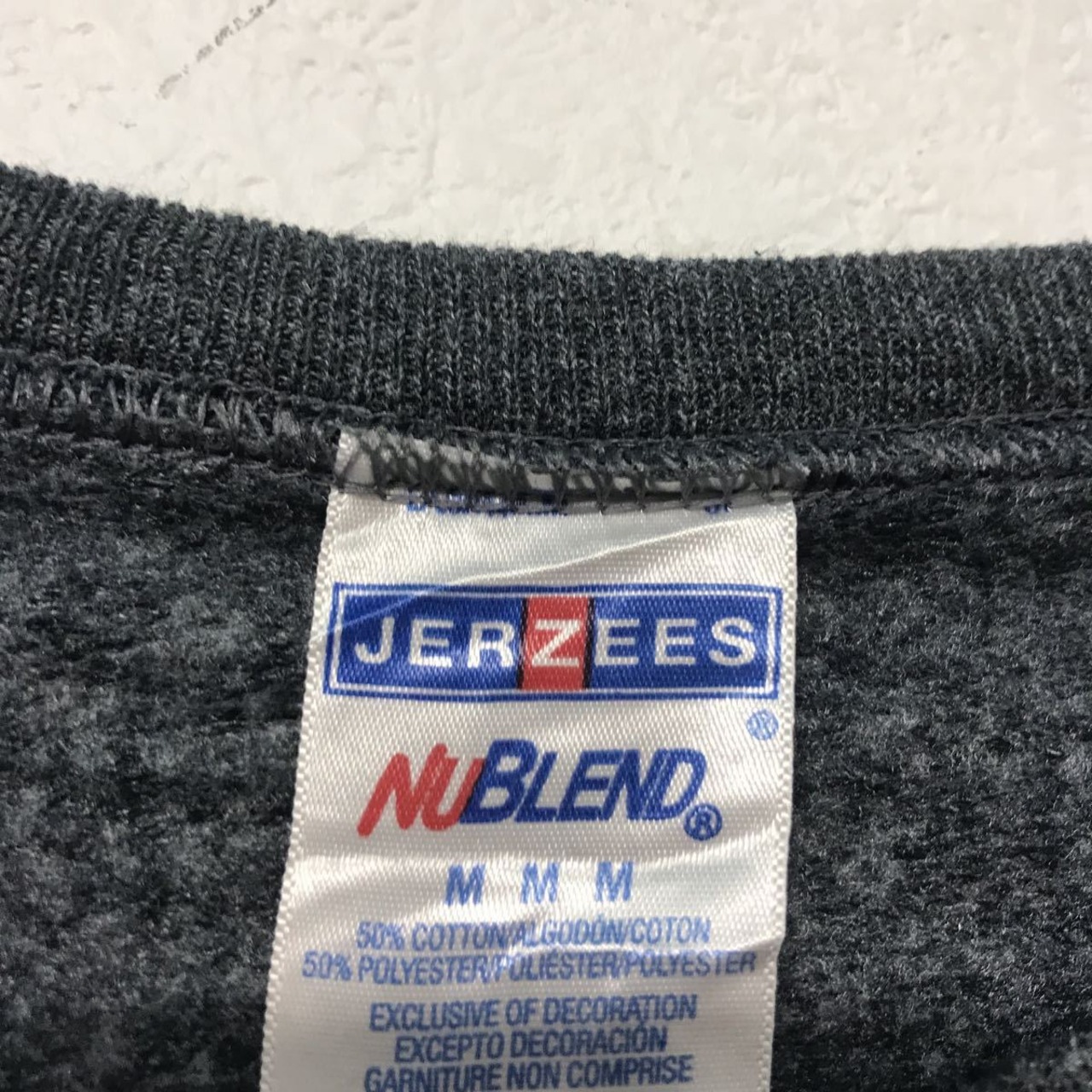 JERZEEZ プリント スウェット トレーナー M グレー ホワイト ジャージーズ 裏起毛 古着卸 アメリカ仕入 a509-5264