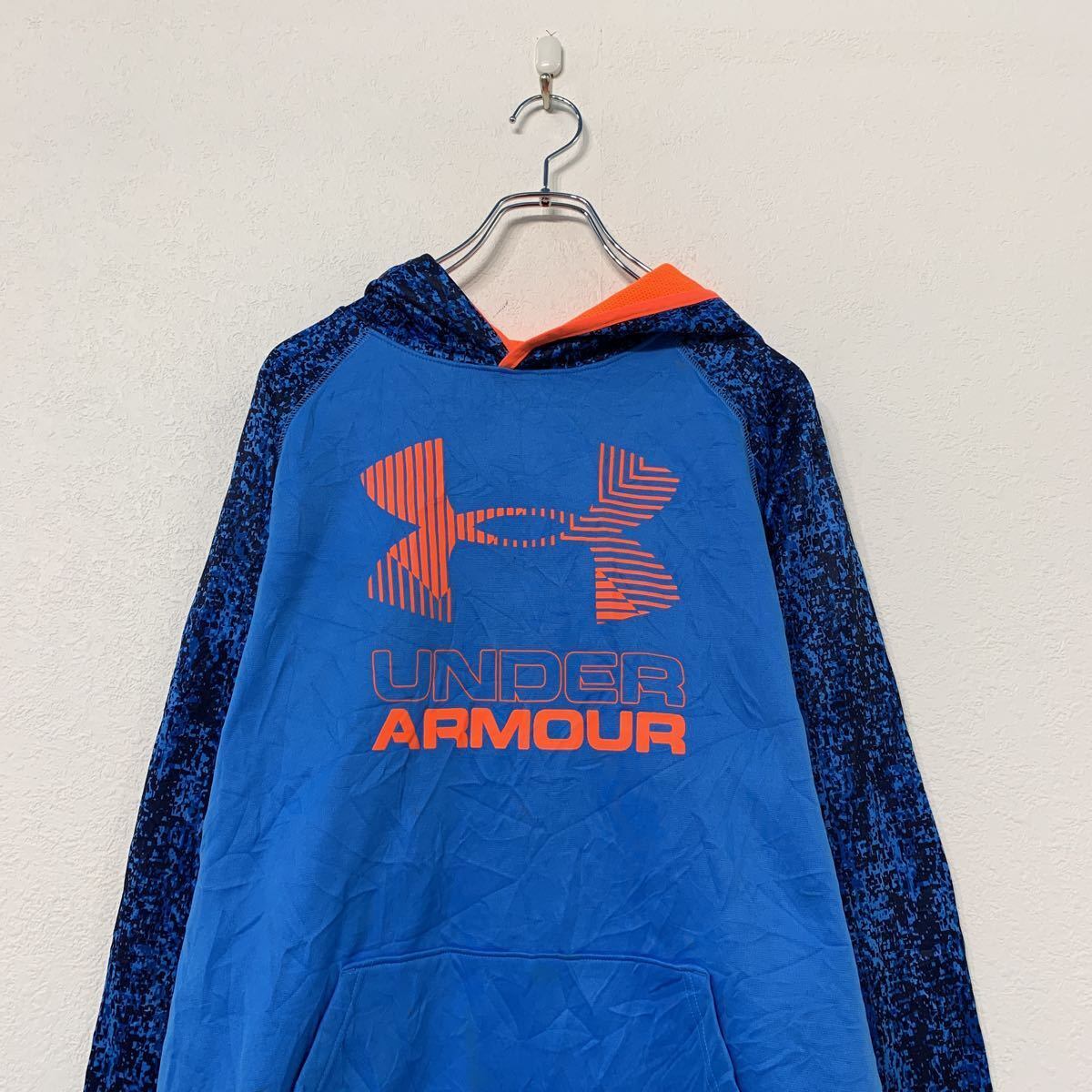 UNDER ARMOUR プリント スウェット パーカー XL ブルー オレンジ アンダーアーマー 裏起毛 フーディー 古着卸 アメリカ仕入 a509-5351