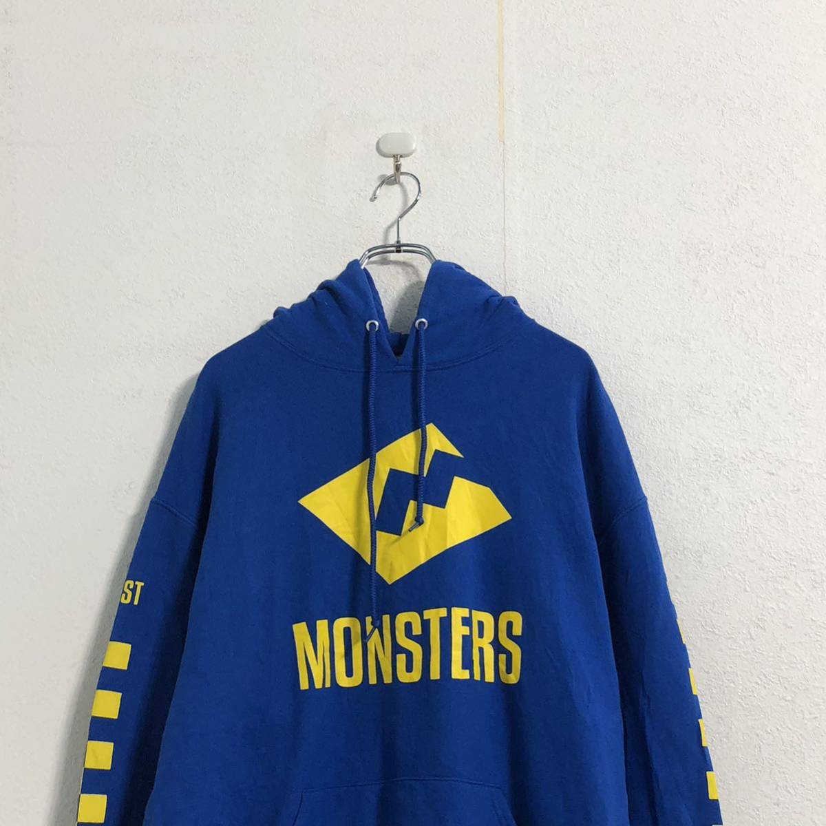 JERZEES スウェット プリント パーカー フーディー L ブルー イエロー ジャージーズMONSTER 肉厚 古着卸 アメリカ仕入 a509-5382