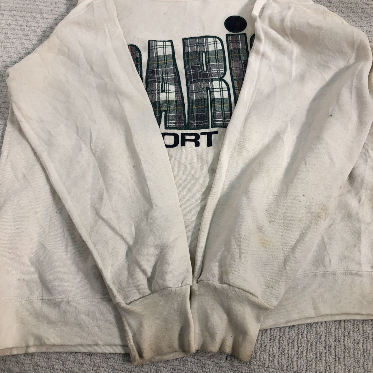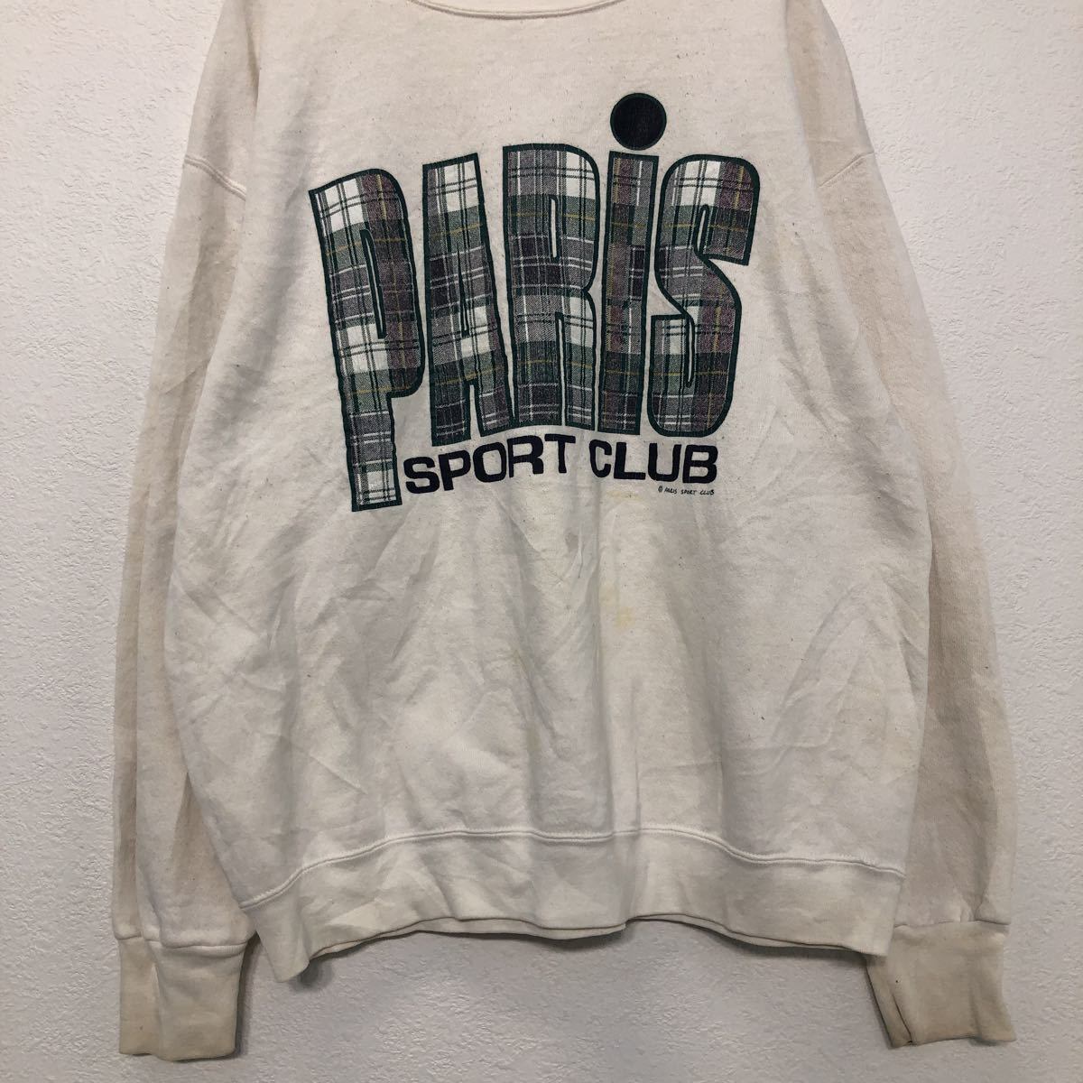 Paris Sport Club プリント スウェット トレーナー L〜 ホワイト ブラック グリーン チェック ロゴ 古着卸 アメリカ仕入 a509-5884 | 古着屋DEN(デン)大阪・古着卸・安い