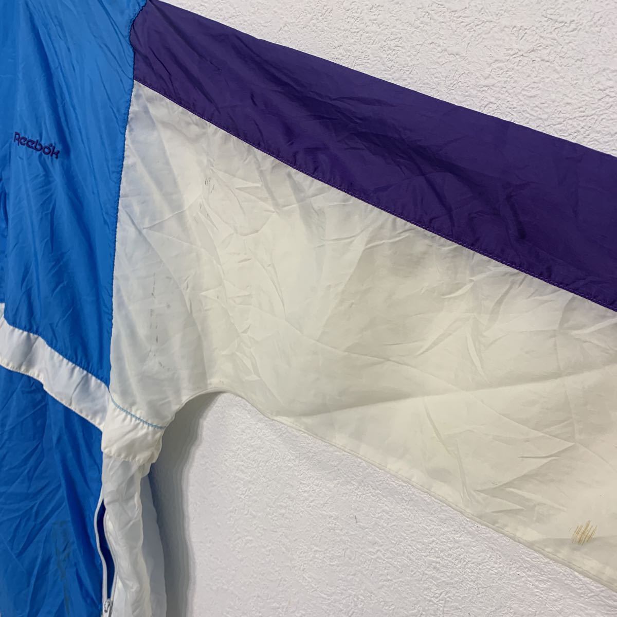 Reebok ナイロンジャケット M ブルー パープル ホワイト リーボック スポーツ 古着卸 アメリカ仕入 a509-6242
