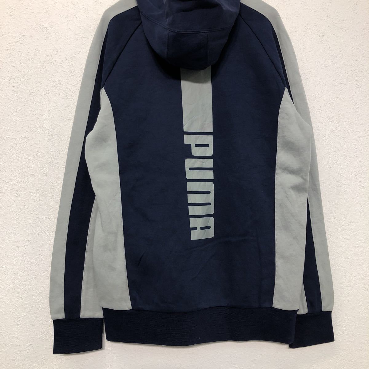 PUMA プリント スウェット パーカー S ネイビー ライトグレー プーマ ジップアップ ポケット 古着卸 アメリカ仕入 a509-6277