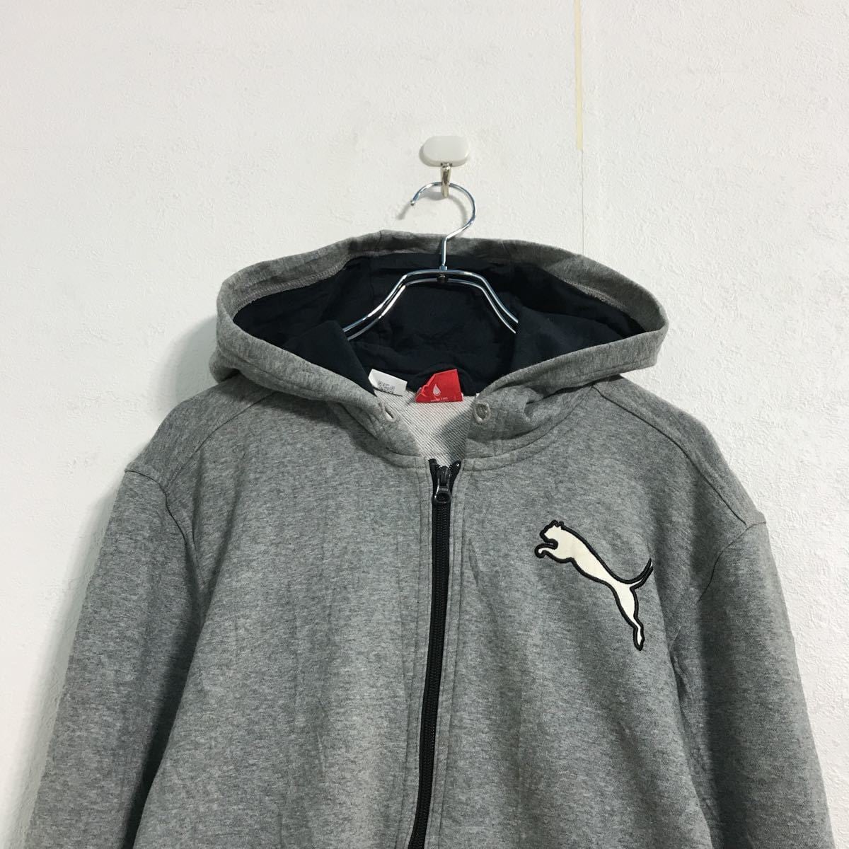 PUMA ロゴ スウェット パーカー M グレー プーマ ジップアップ ワンポイントロゴ 古着卸 アメリカ仕入 a509-6451