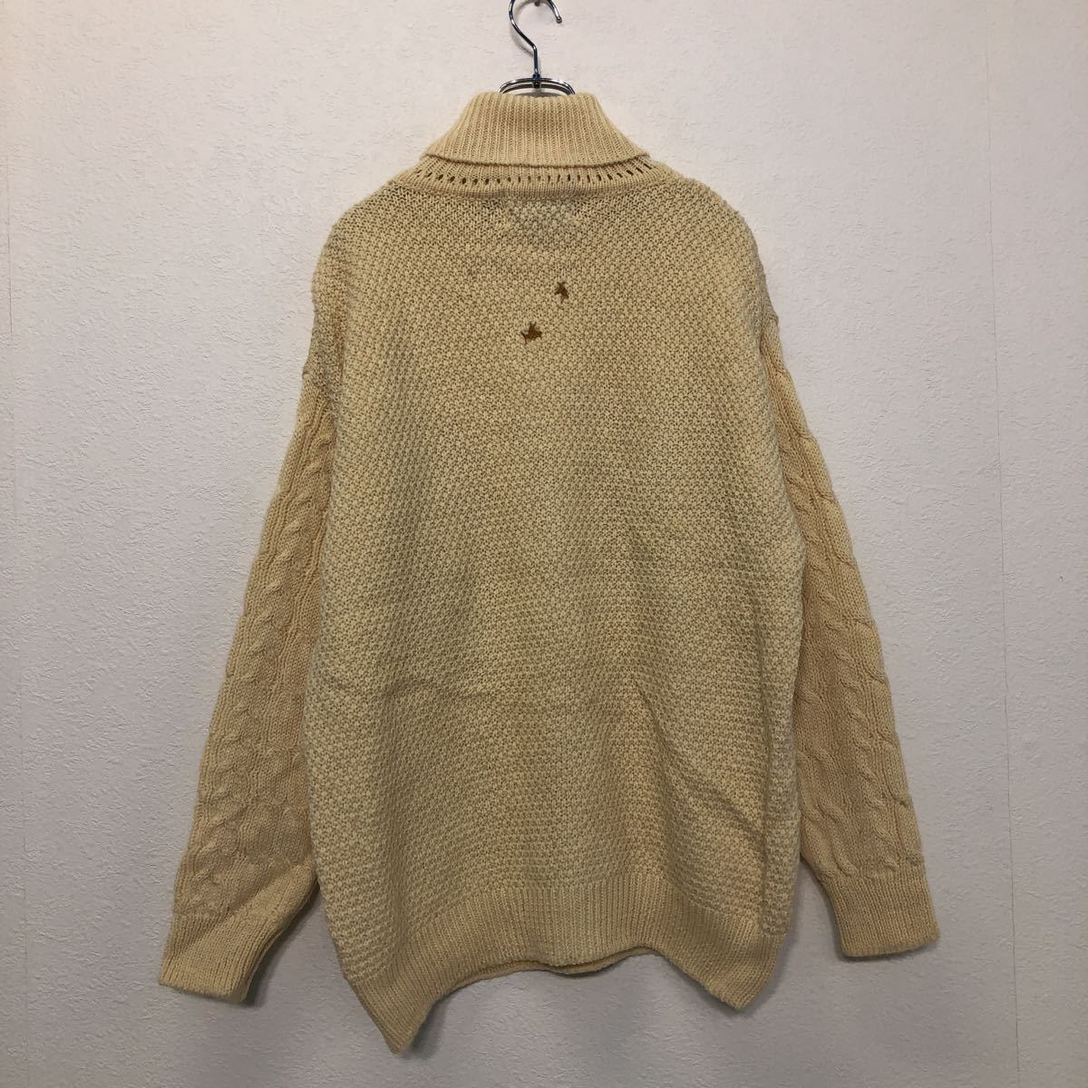 aRan cRaFts ウール ニット セーター L ホワイト アイルランド製 タートルネック ケーブル編み 古着卸 アメリカ仕入 a510-5475