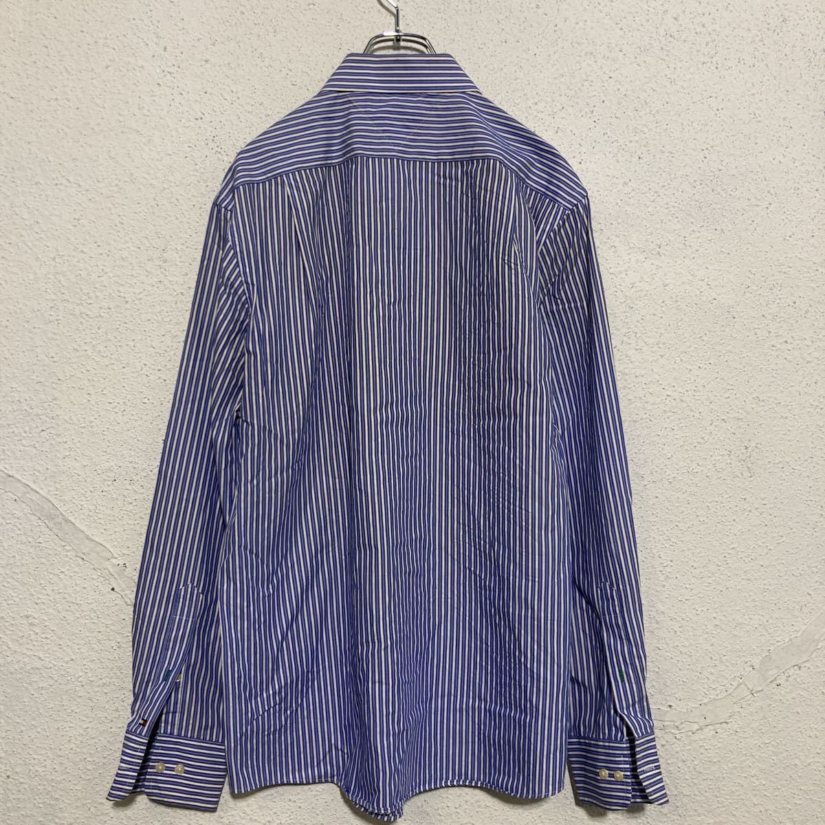 TOMMY HILFIGER 長袖 シャツ L ブルー ホワイト トミーヒルフィガー ストライプ 古着卸 アメリカ仕入 a510-5908